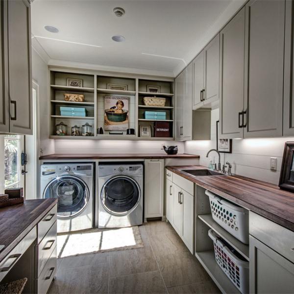 Customized Solid Dark Grey Bathroom Cabinet Shaker Washing Machine Cabinet Images |